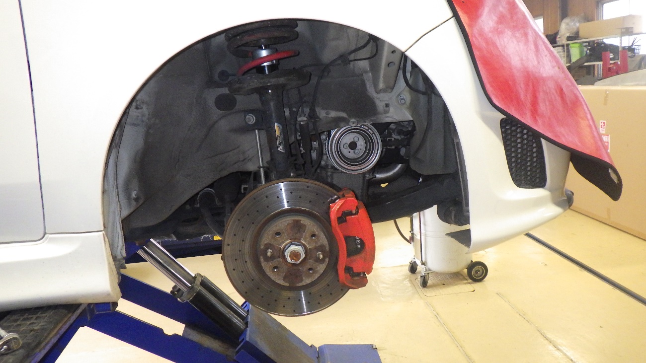 タイヤ及びタイヤハウスを取り外した状態になります。