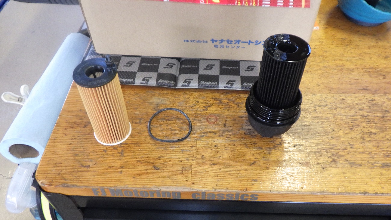 エンジンオイルフィルターを取り外した様子になります。