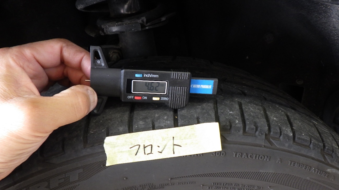 今回、リヤタイヤの方が多いのと右フロントタイヤがパンク修理跡が見受けられてたので、