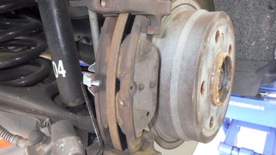 交換前フロントブレーキパッド残量は約11.5mmです。