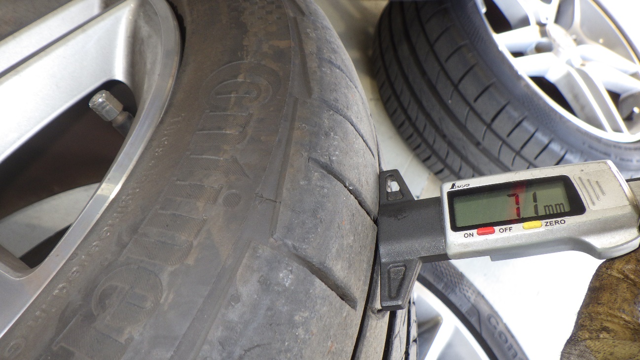 交換前リヤブレーキパッド残量は約9.5mmです。