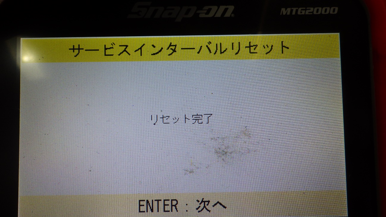 テスターにて故障コードの確認と、サービスのリセットを実施しています。