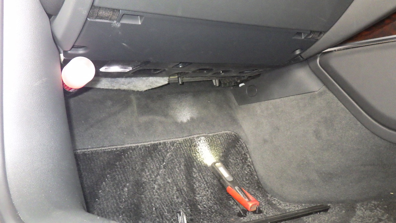 助手席下部からエアコンフィルターを取り外して、交換しております。