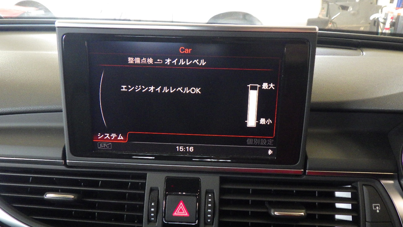 エンジンオイル量もここでモニターチェックしております。