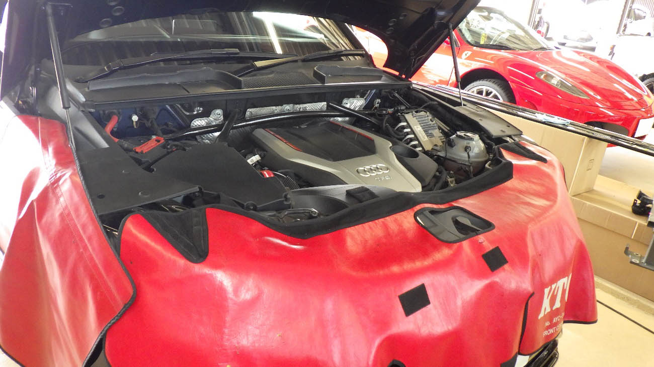 エンジンルーム周辺は保護カバーを付けて作業に取り掛かって参ります。