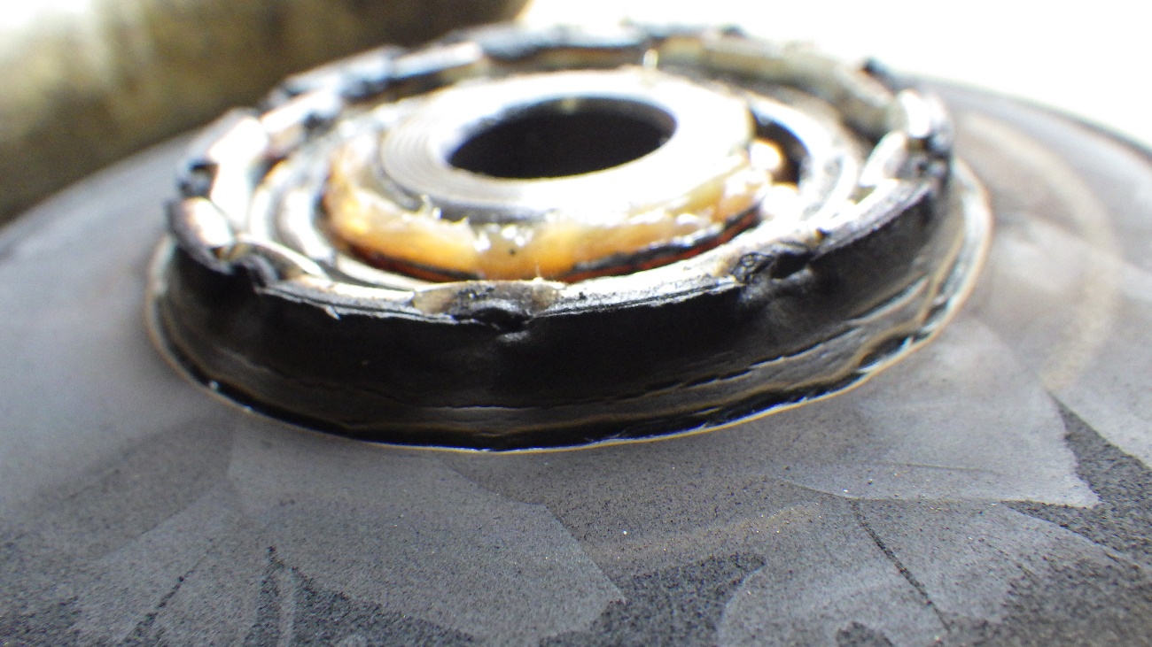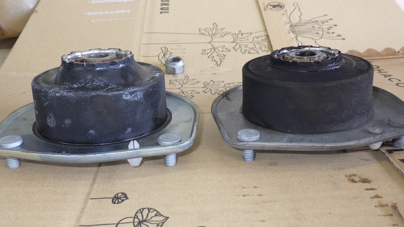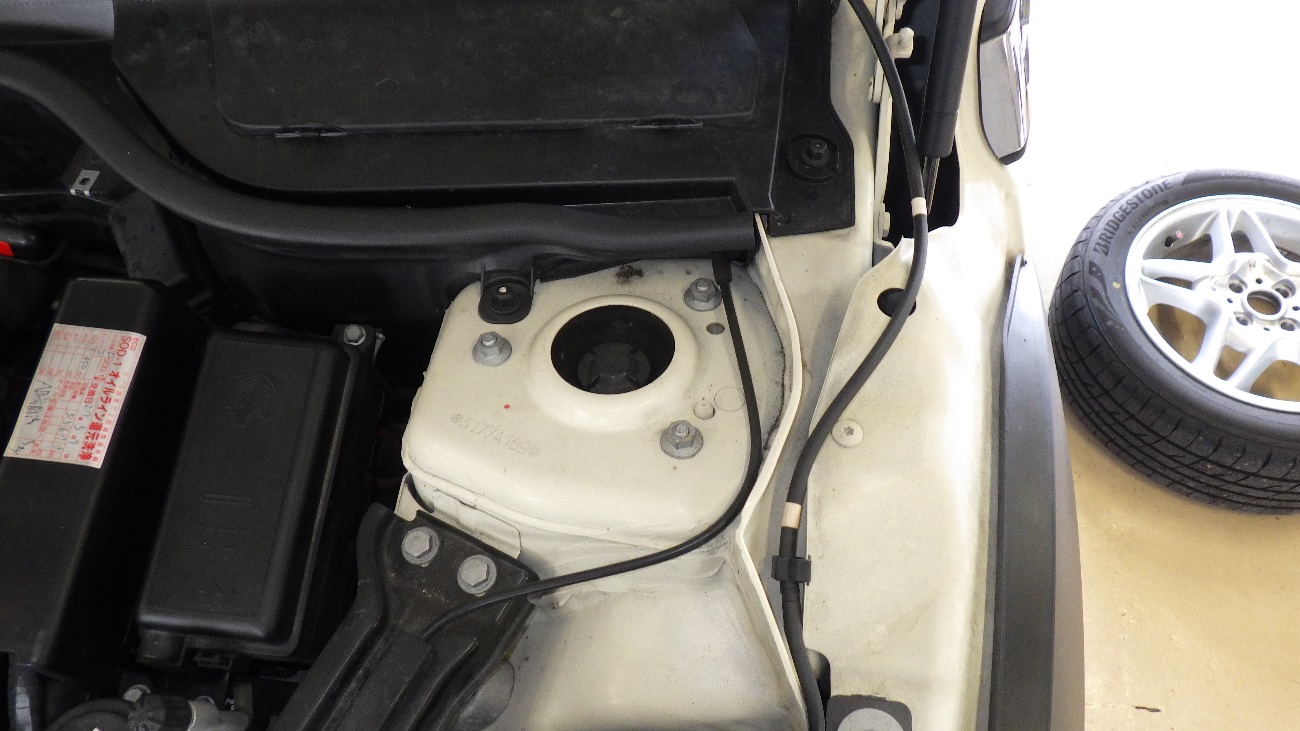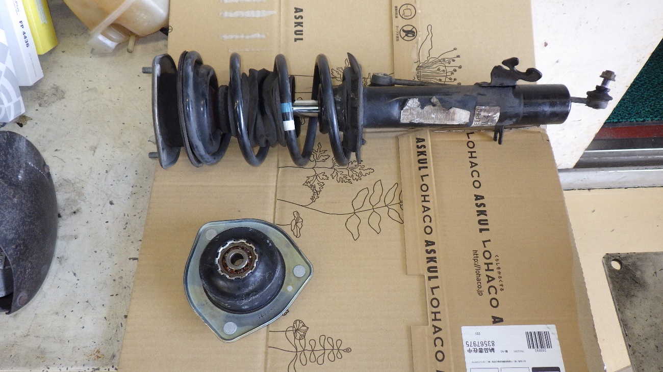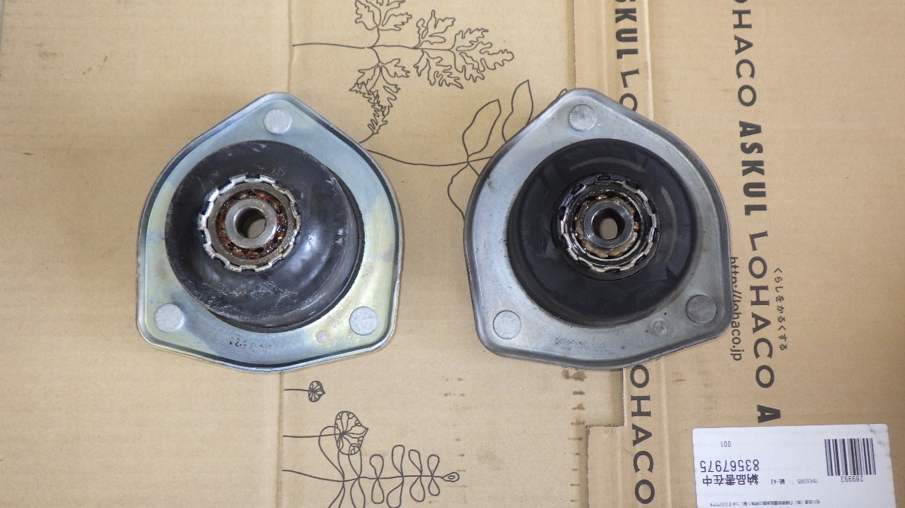 左側のストラットアッパマウントの交換様子になります。
