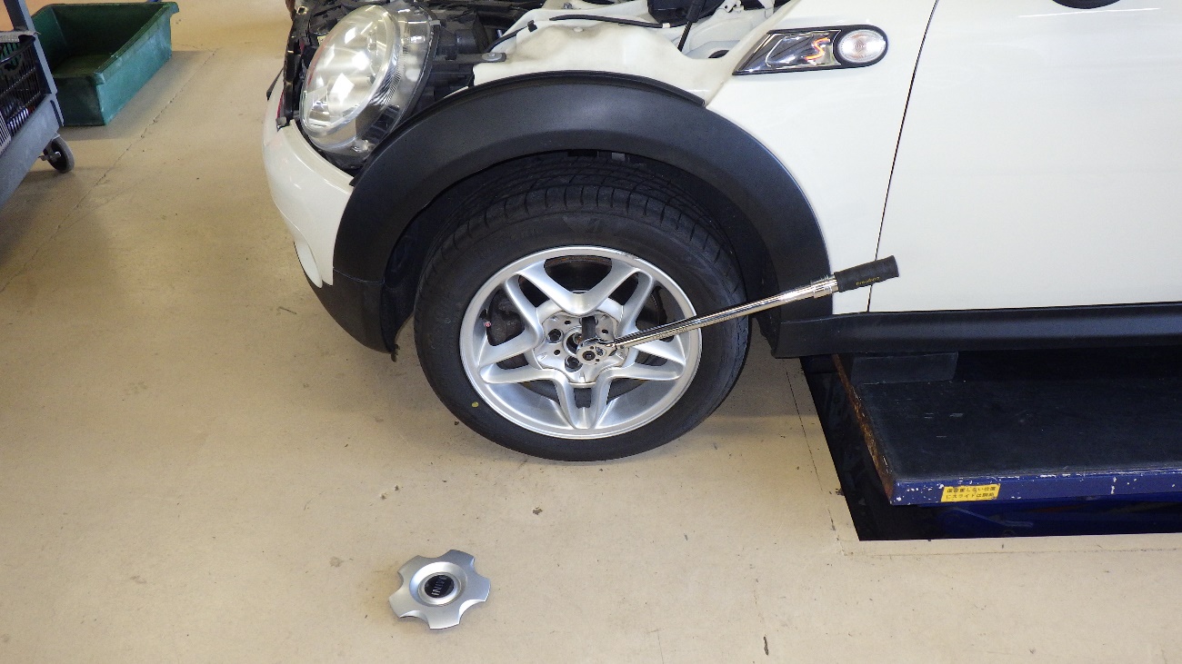 下廻り周辺の作業が完了致しましたので、ホイールを締め付けております。