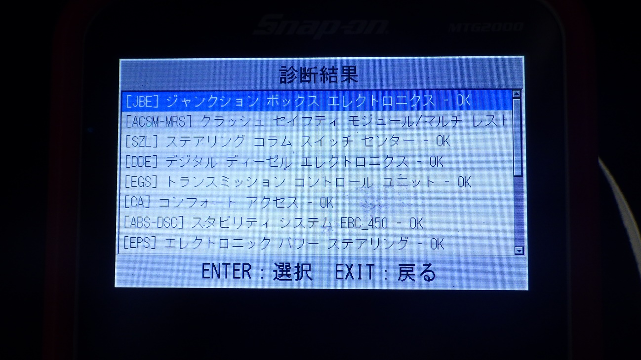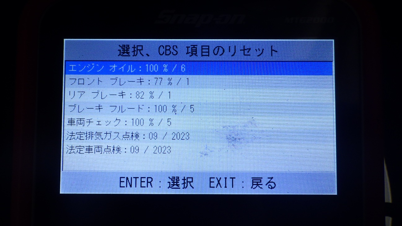 テスターにて故障コードの確認と、サービスのリセットを実施しています。