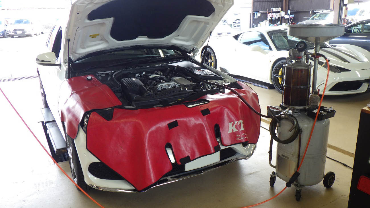エンジンオイルの交換様子になります。