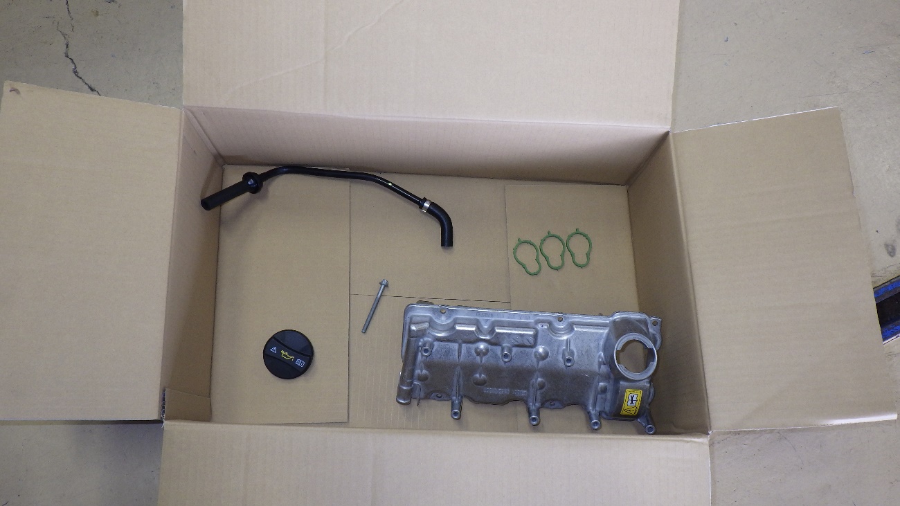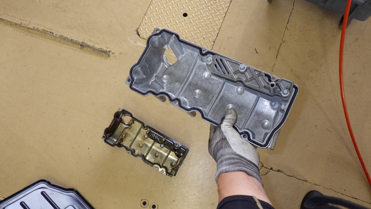 新しいタペットカバーになります。ガスケットと一体式なので、ASSY交換となります。