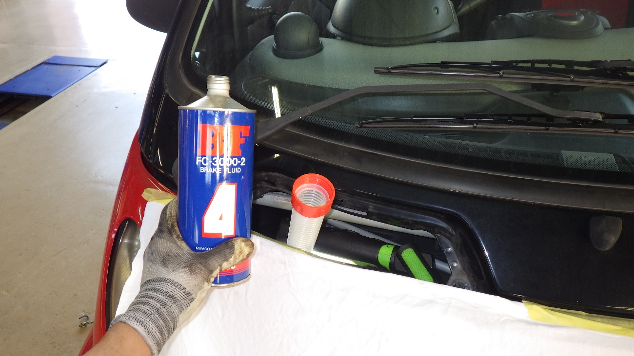 前後ブレーキ関連作業完了後、ブレーキオイルの交換作業に取り掛かって参ります。