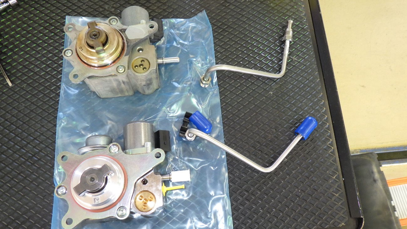新旧比較した高圧ポンプになります。下の部品一式が高圧ポンプ及びパイプになります。