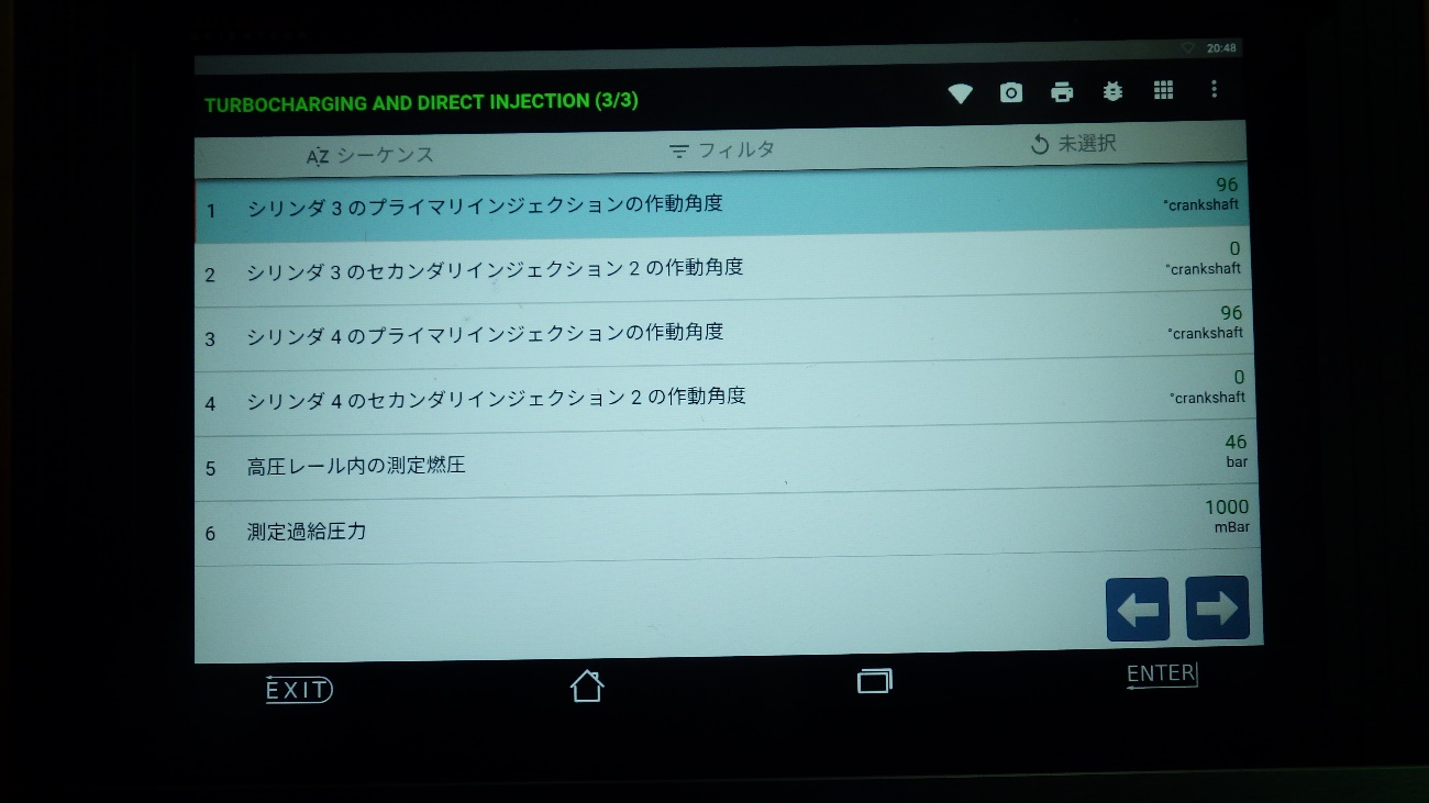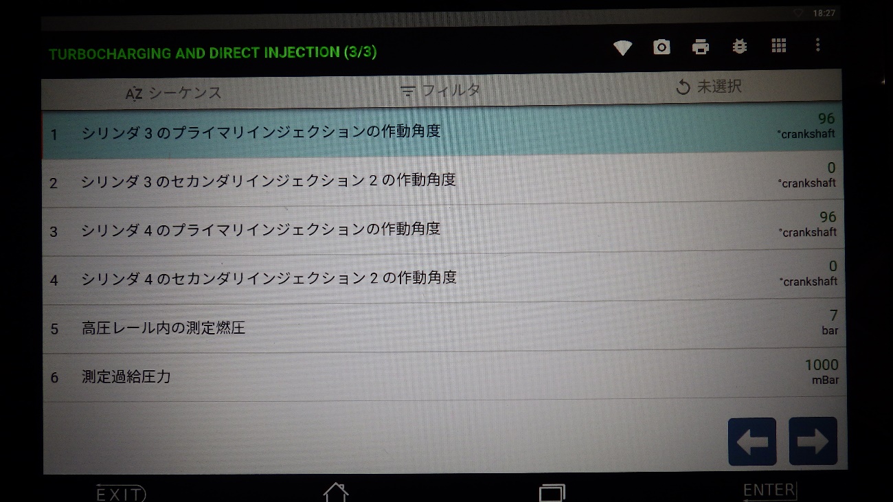 燃圧はアイドル時46barを表示。エラーの入力も改善しております。