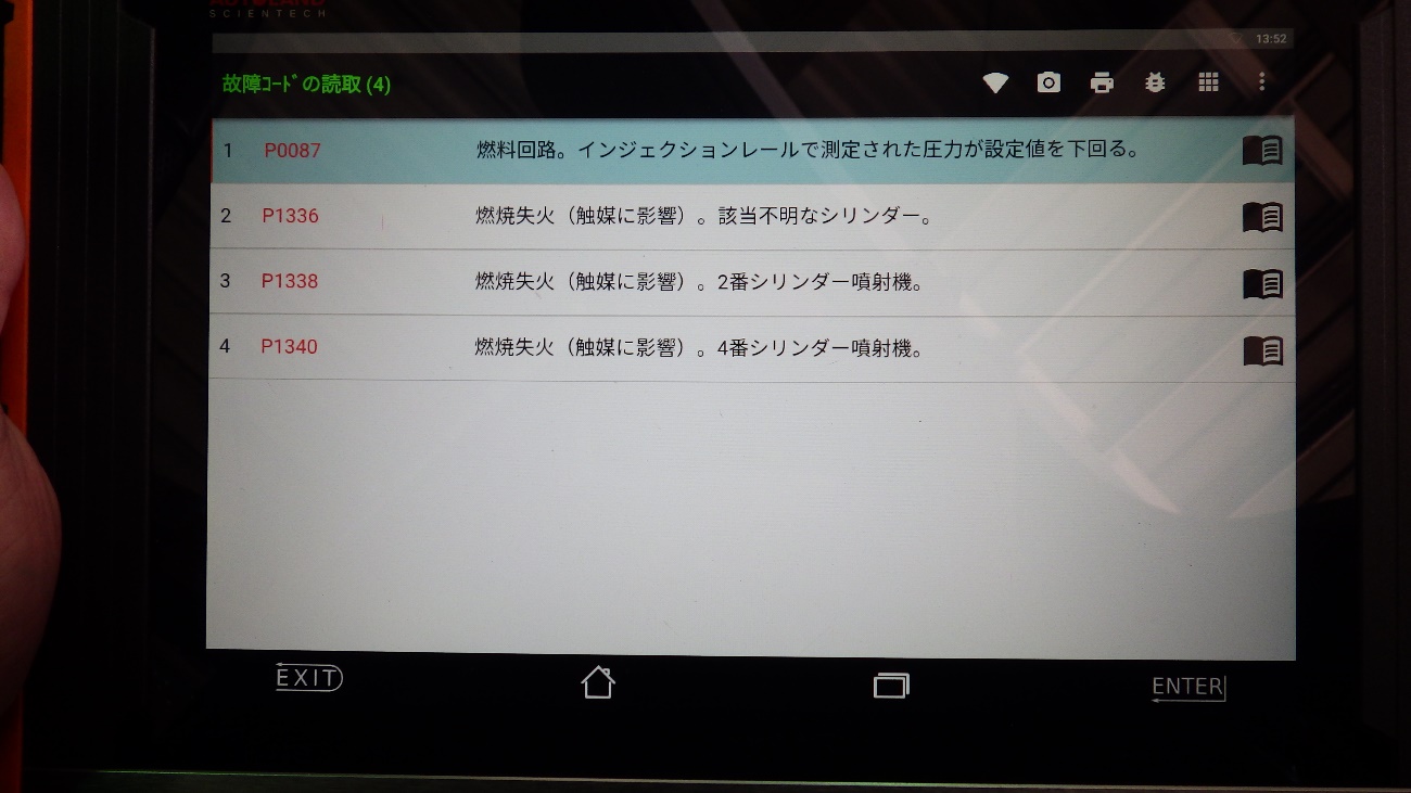 常時エンジンに不調がありましたので、先にテスターを使用して不具合を特定して参ります。