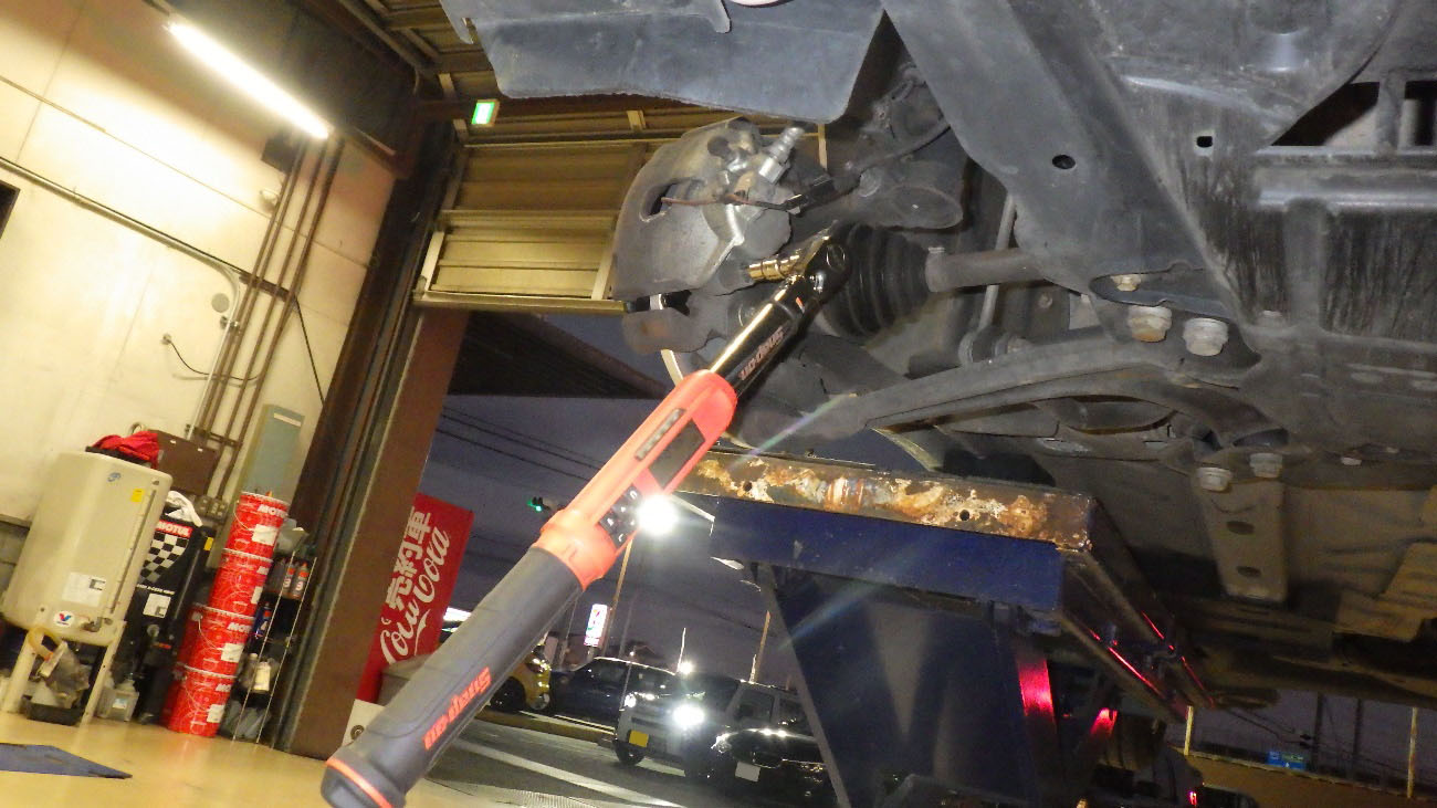 交換後、ブレーキキャリパーステーを規定トルクにて締め付けております。