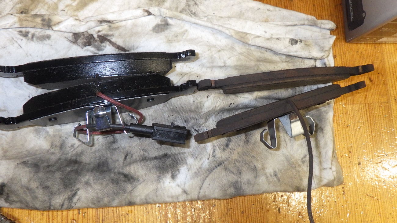 新旧比較したブレーキパッドになります。摩耗して、半分以下になっておりました。