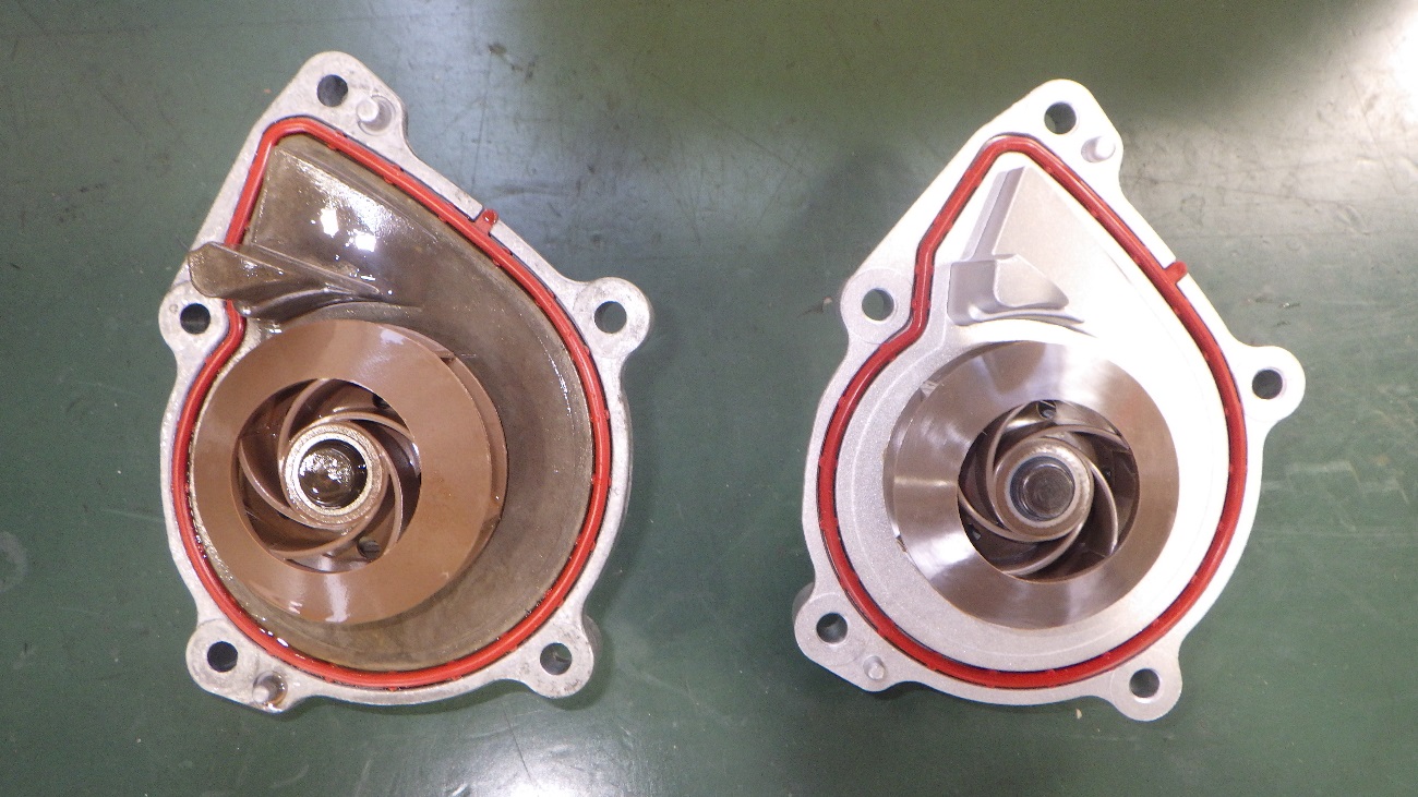 左が水漏れのあったウォーターポンプです、右が新品です。