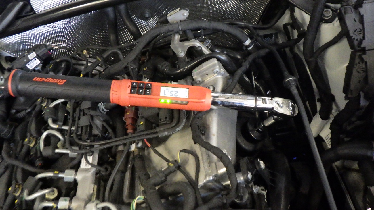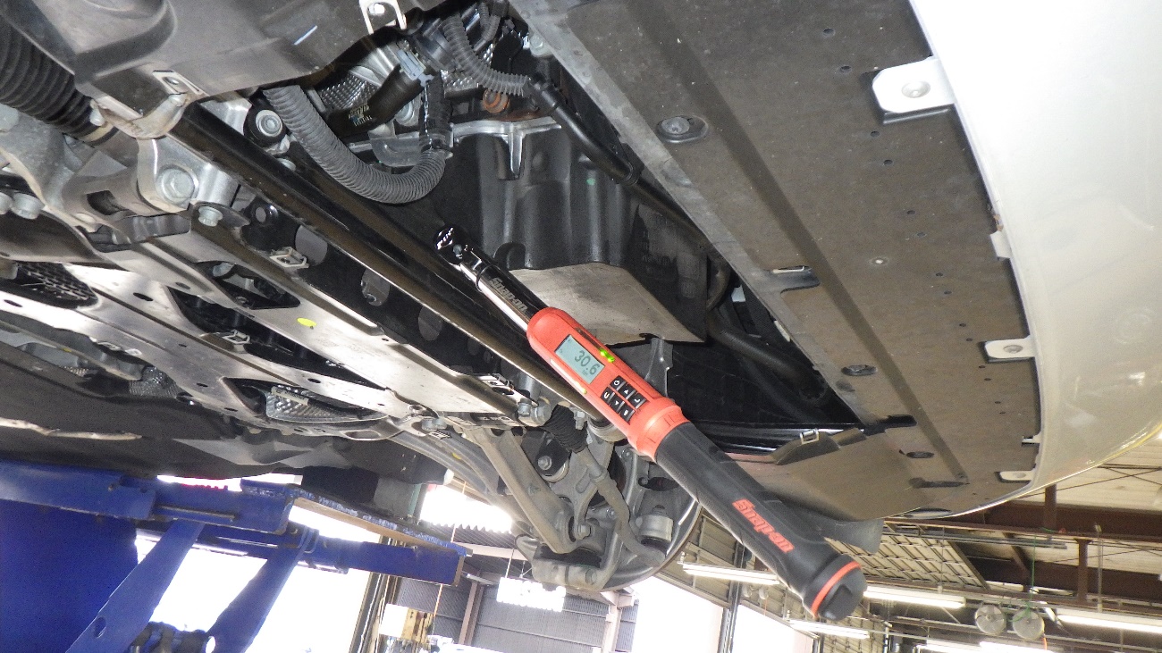 エンジンオイル交換後、ドレーンボルトを規定トルクにて締め付けております。