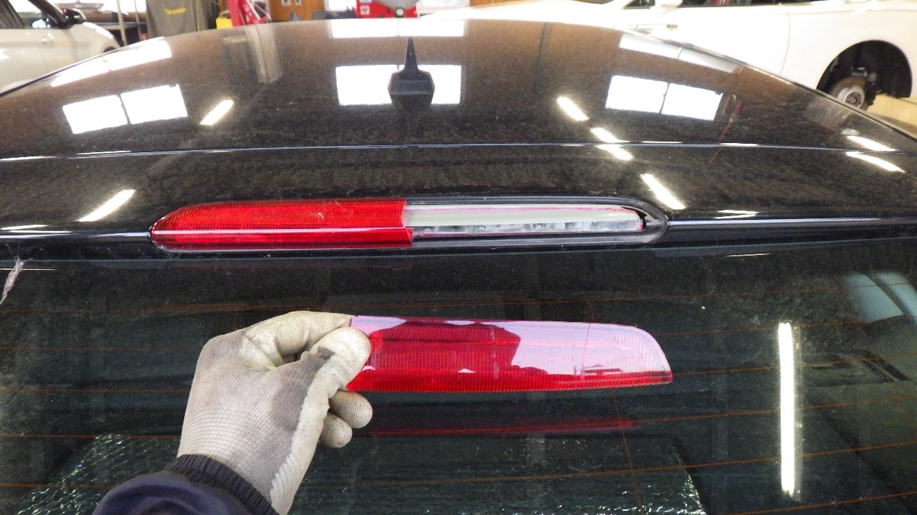 ハイマウントストップランプのレンズが割れておりましたので交換させて頂きます。