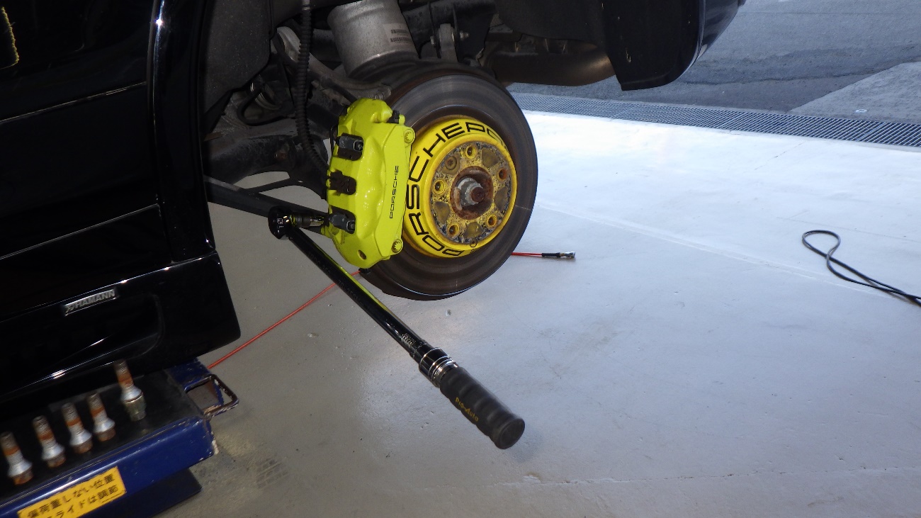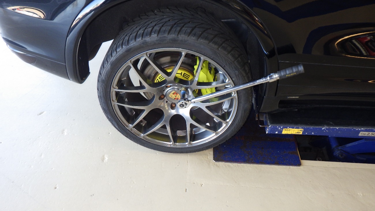 作業完了後、外したホイールを規定トルクにて締め付けております。