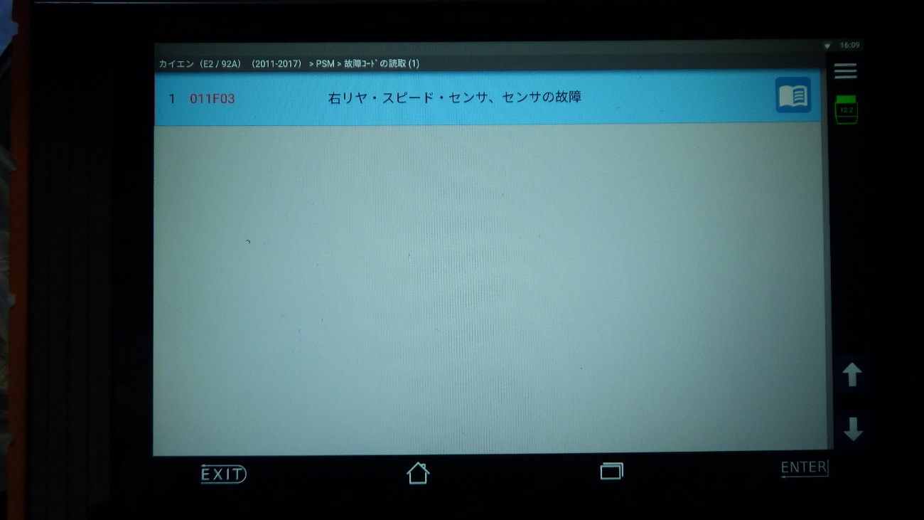 前回と同様で、スピードセンサーにエラーが表示されておりました。