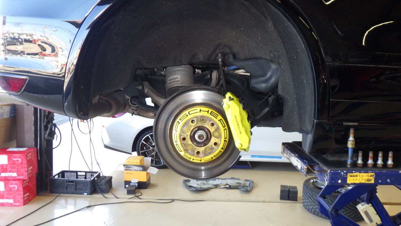リヤ側左右タイヤを取り外して作業に取り掛かっている様子になります。