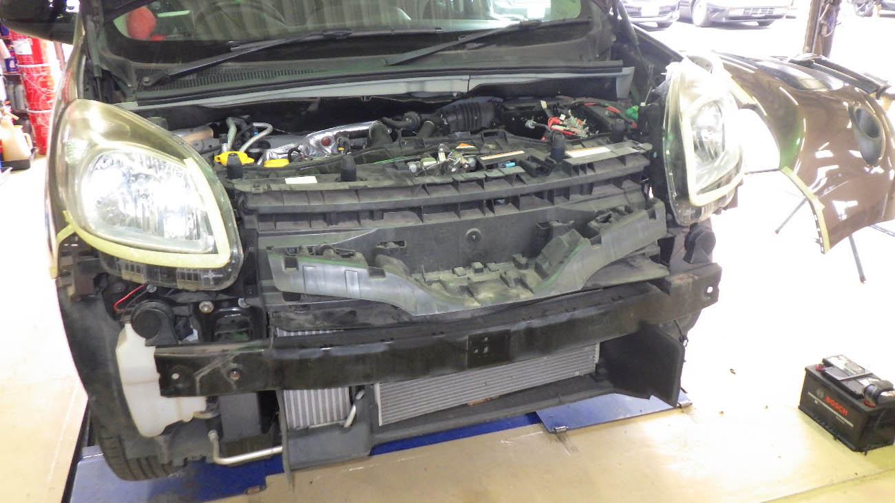 インテークパイプ交換後、フロントバンパーを組み付けて参ります。