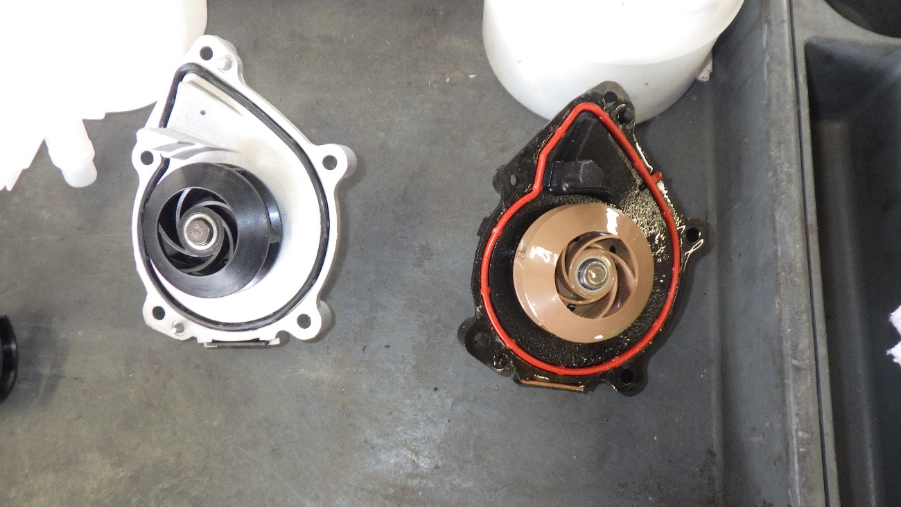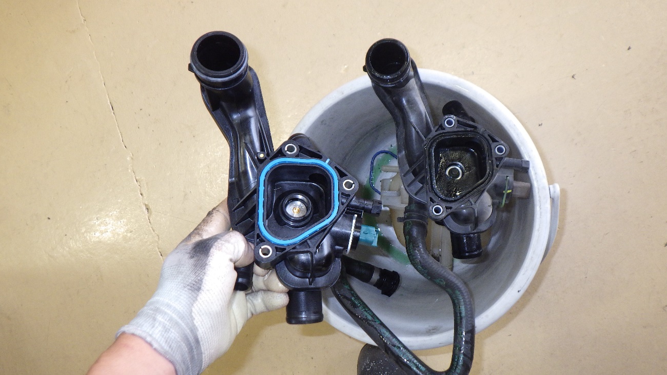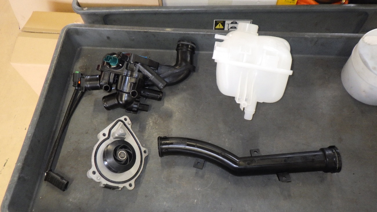 今回交換する予定の部品一式になります。サーモケースASS、ウォーターポンプ、