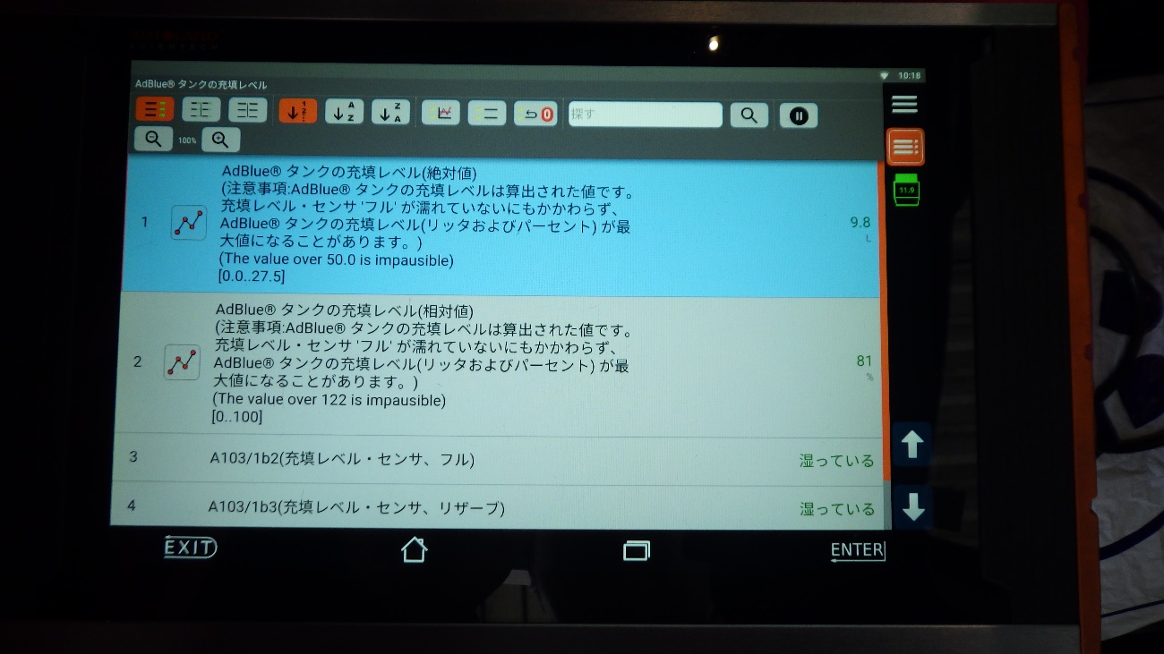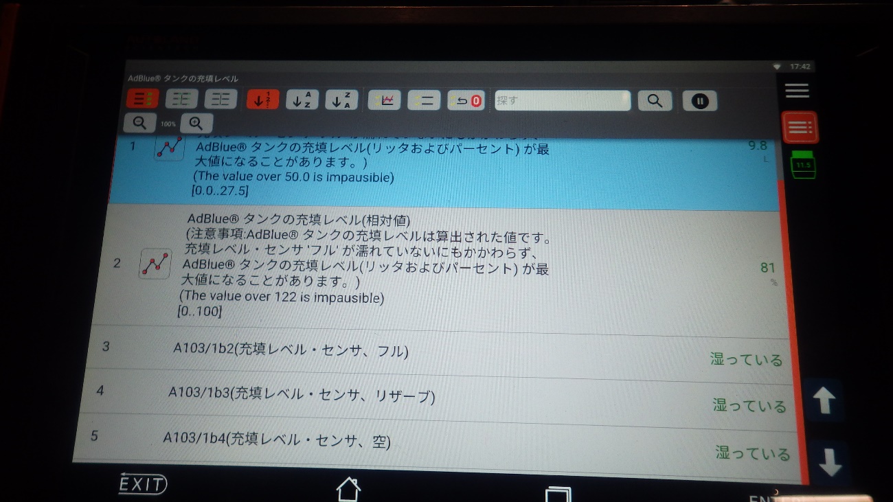 アドブルーを、5Lずつ補充を行い、各センサーが正常に変化しているのも確認しております。