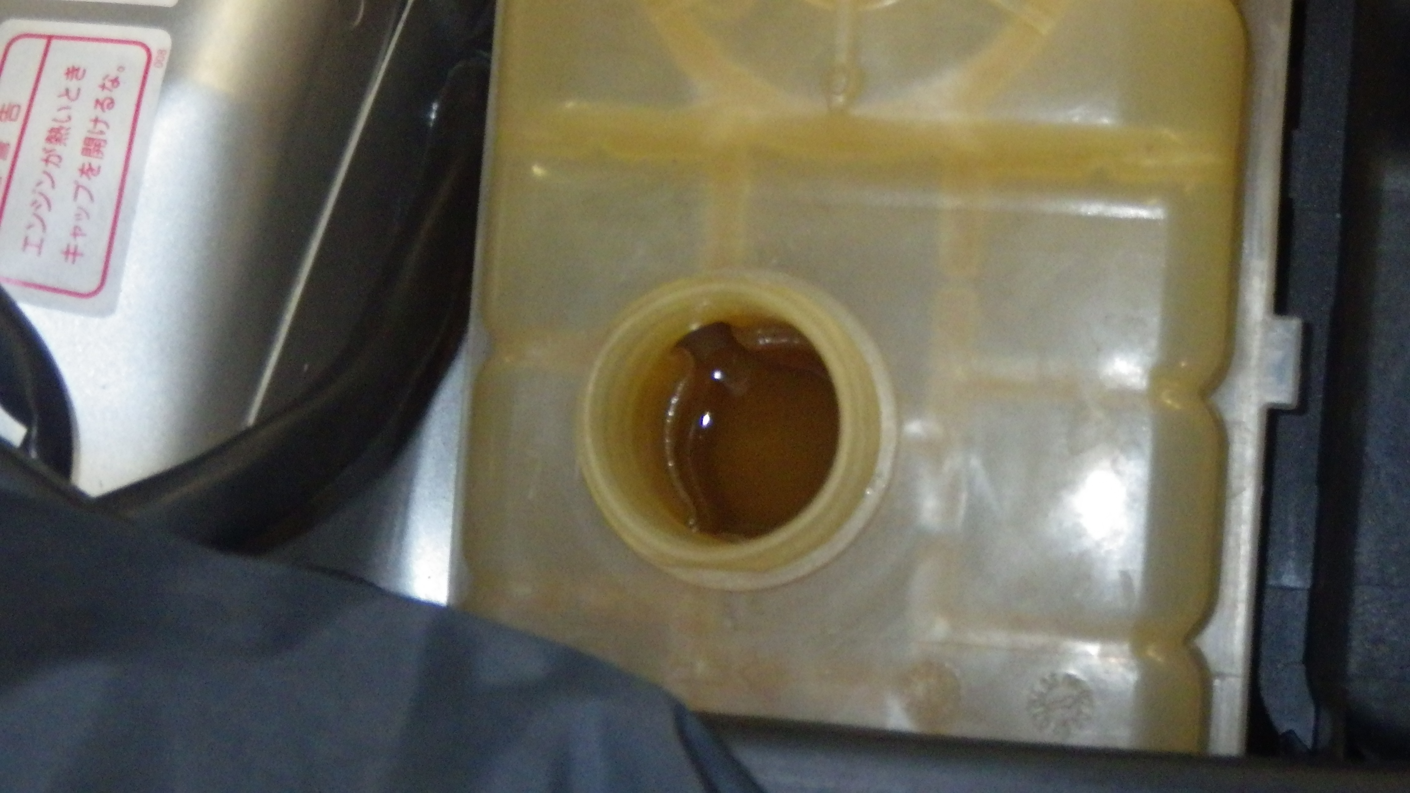 エンジン冷却水です。クーラントの量、状態、各部漏れ等点検実施しています。