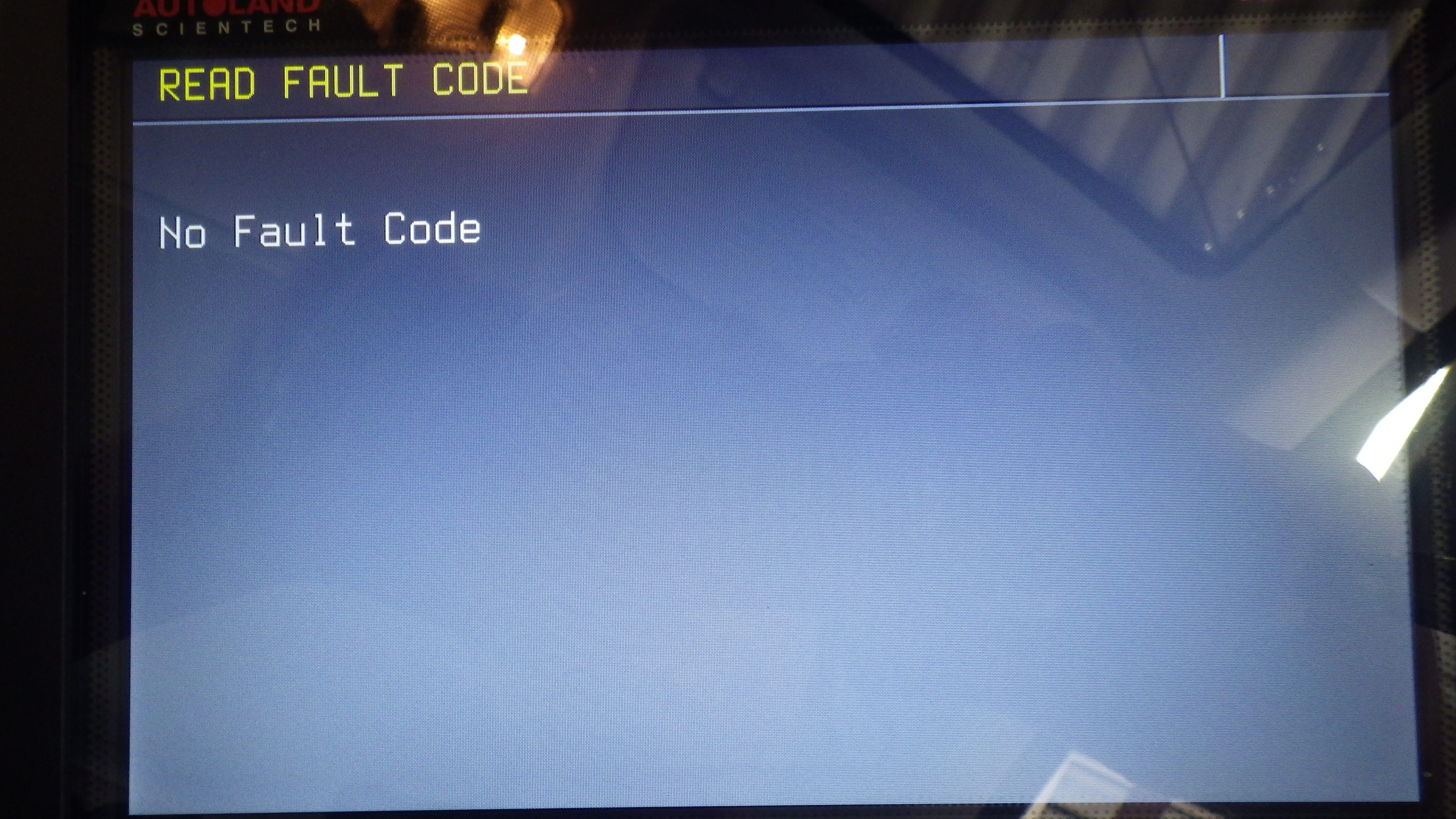 テスターにて故障コードの確認と、サービスのリセットを実施しています。