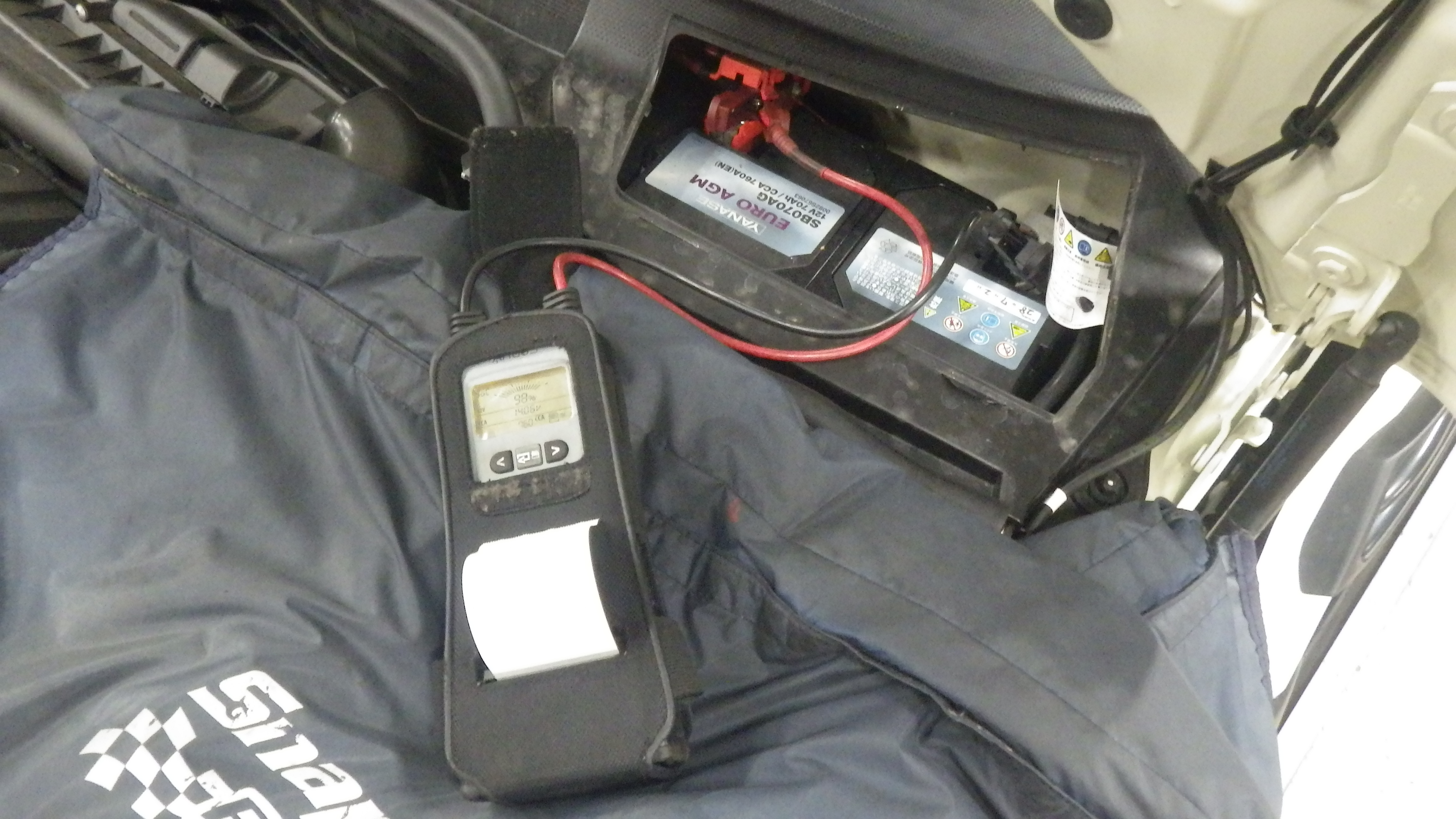 テスターにてバッテリーの点検を実施しています。