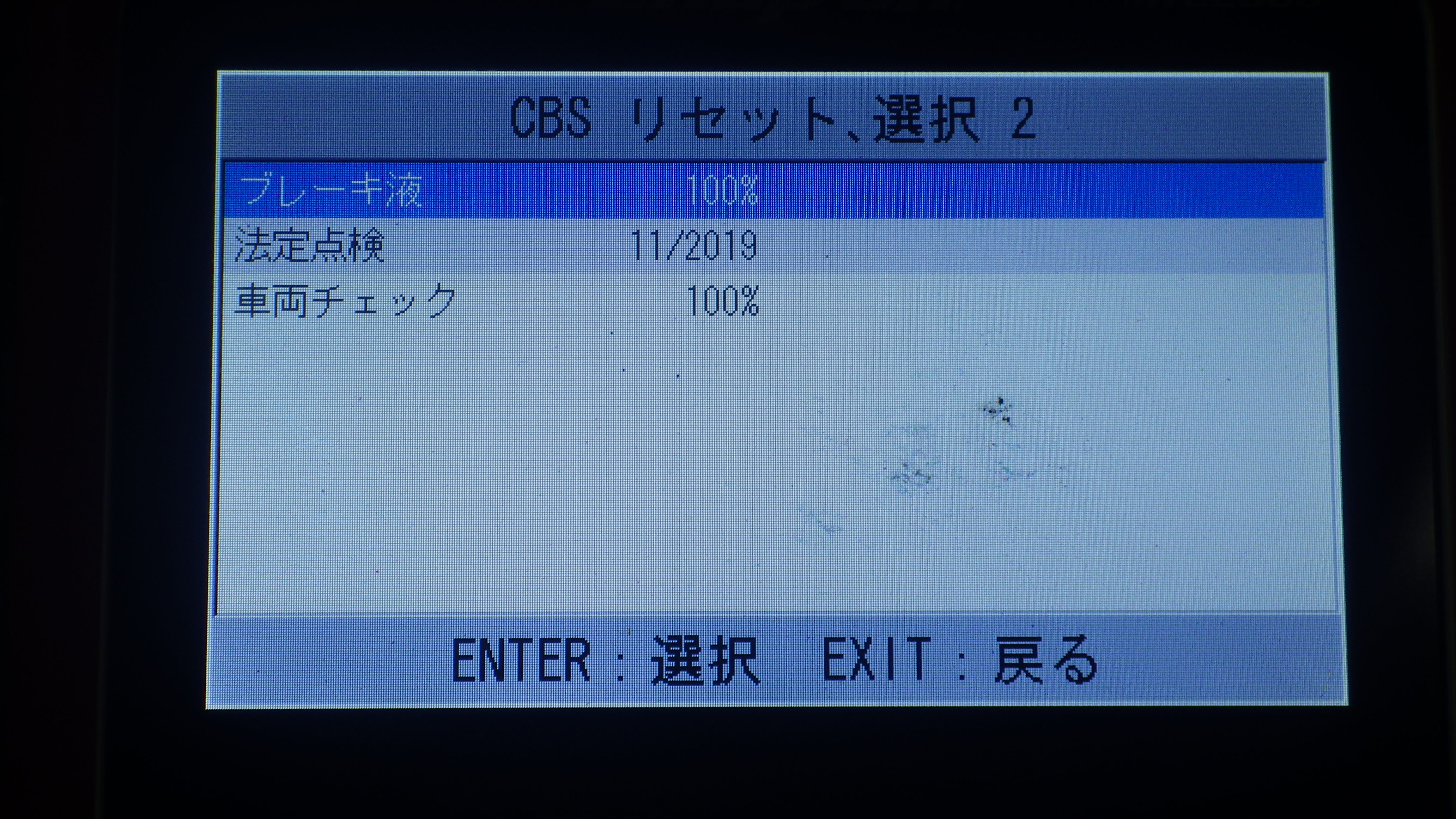 テスターにて故障コードの確認と、サービスのリセットを実施しています。