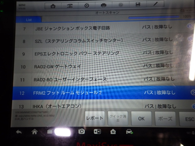 テスターにて各制御系統の診断を行いましたが異常ありませんでした。