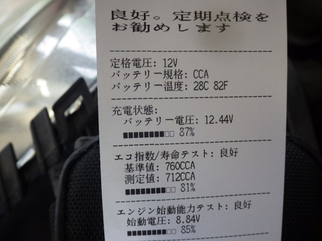 バッテリーはテスターにて診断しましたが異常ありませんでした。