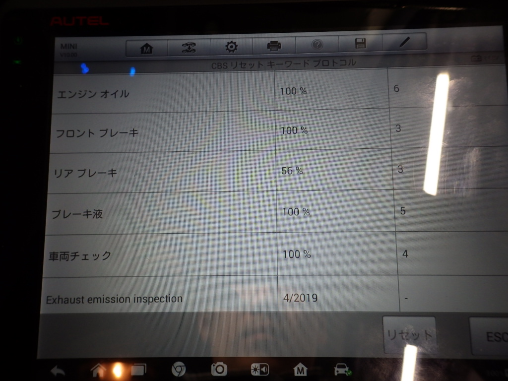 併せてサービスインターバルと空気圧センサーのリセットを行いました。