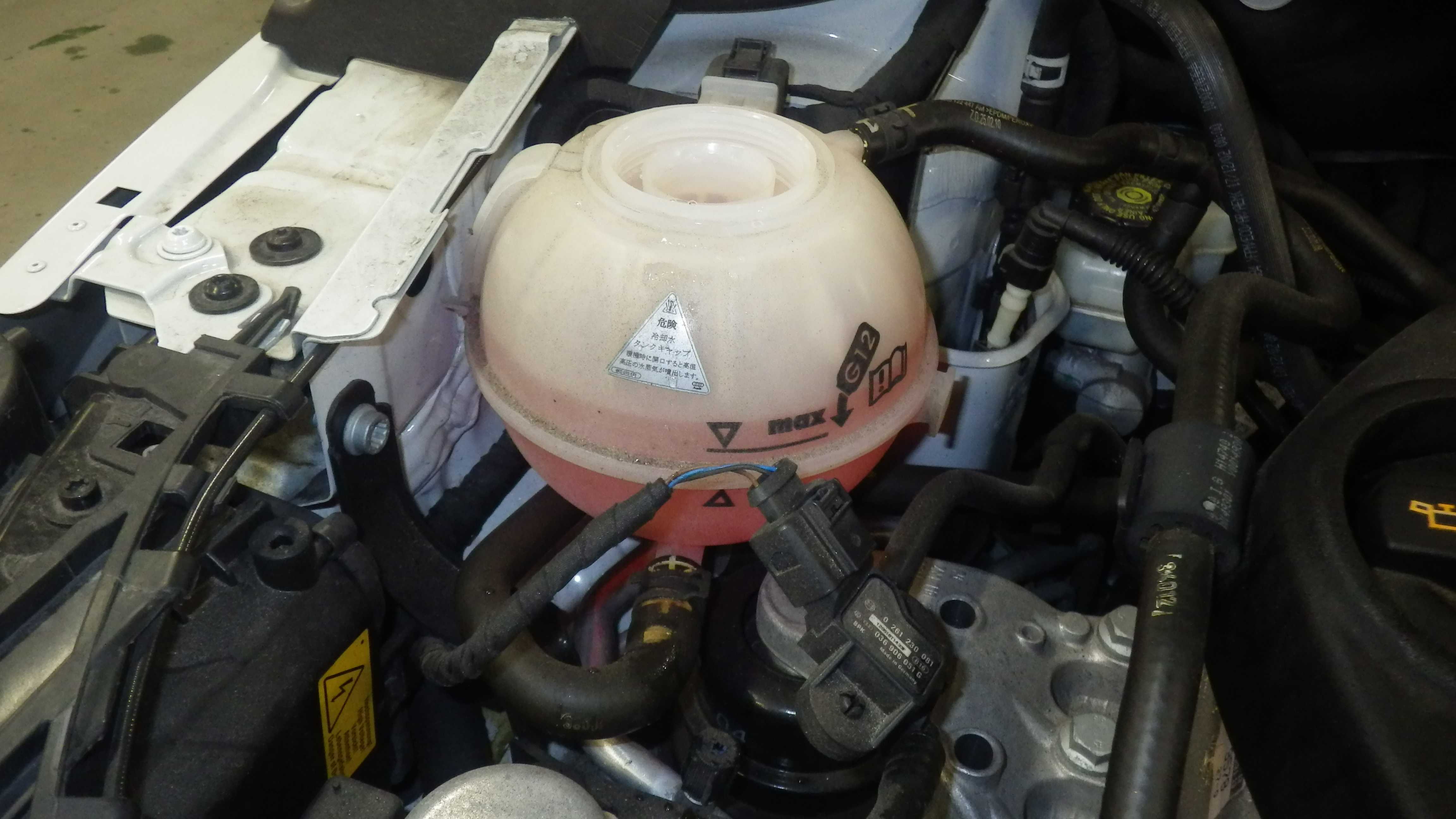 エンジン冷却水です。クーラント量、各部漏れ等点検しています。