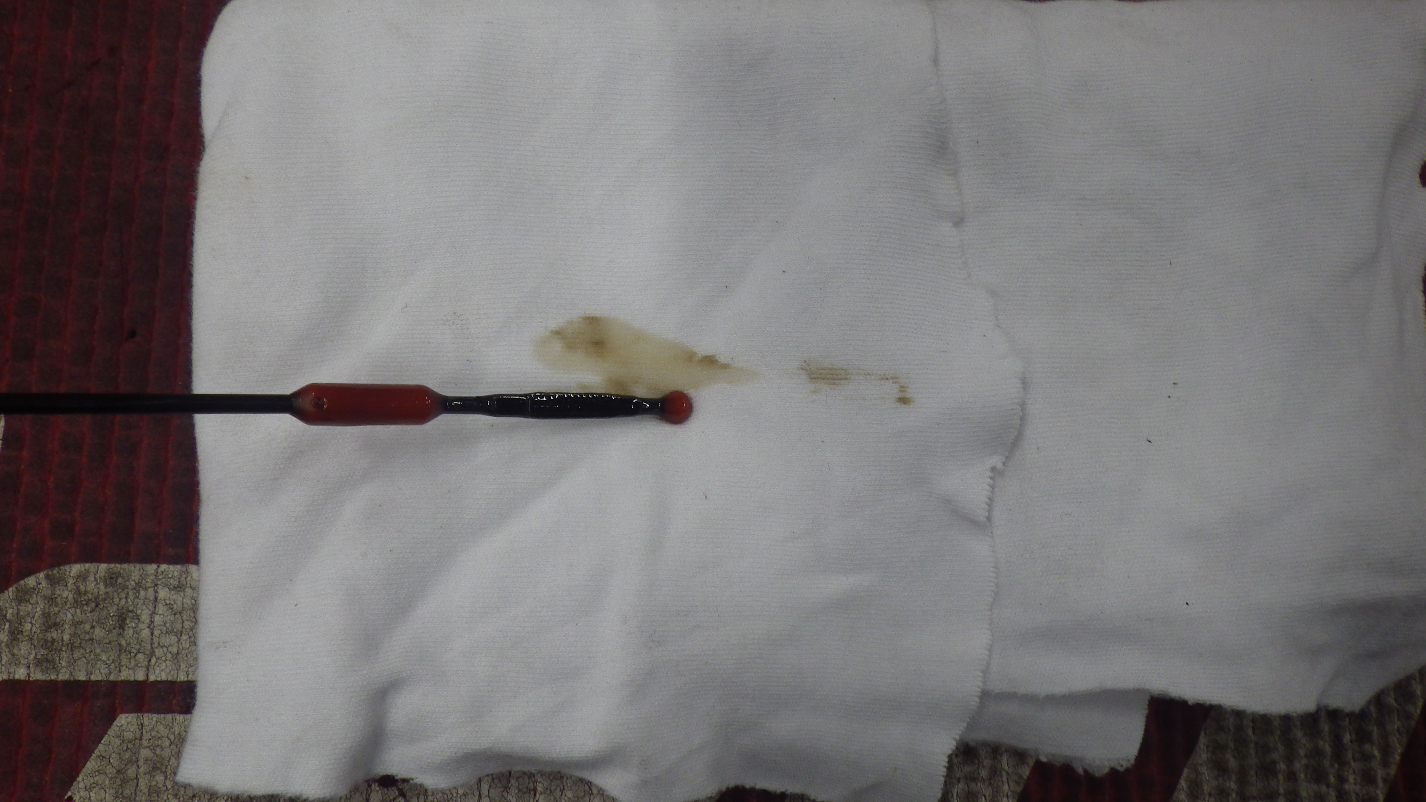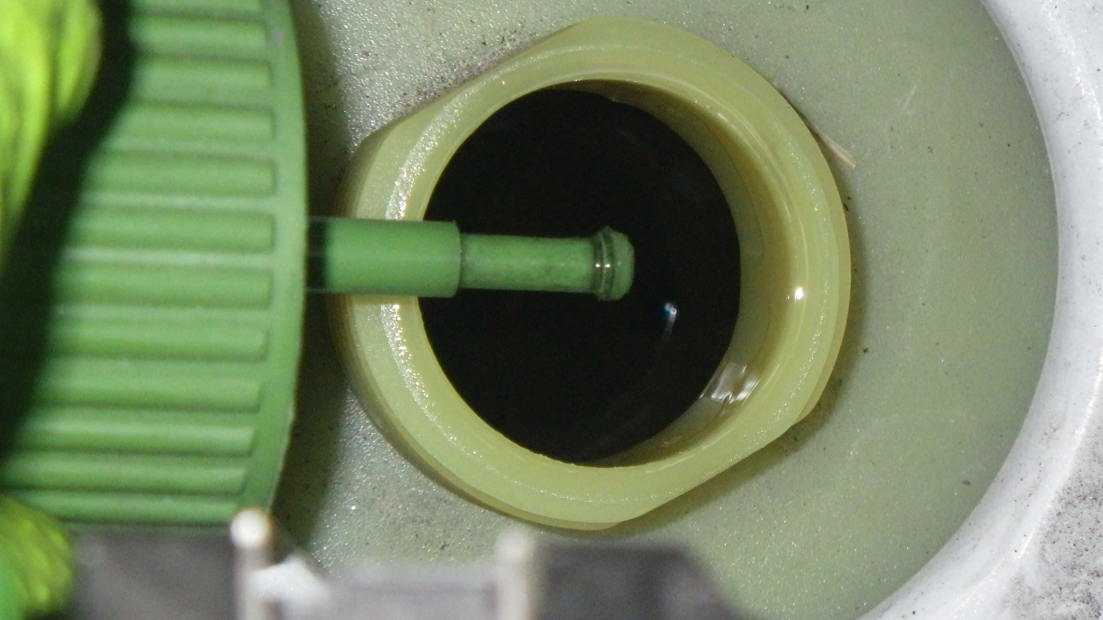 交換前、交換後のオイルです。交換後オイル量の点検も実施しています。