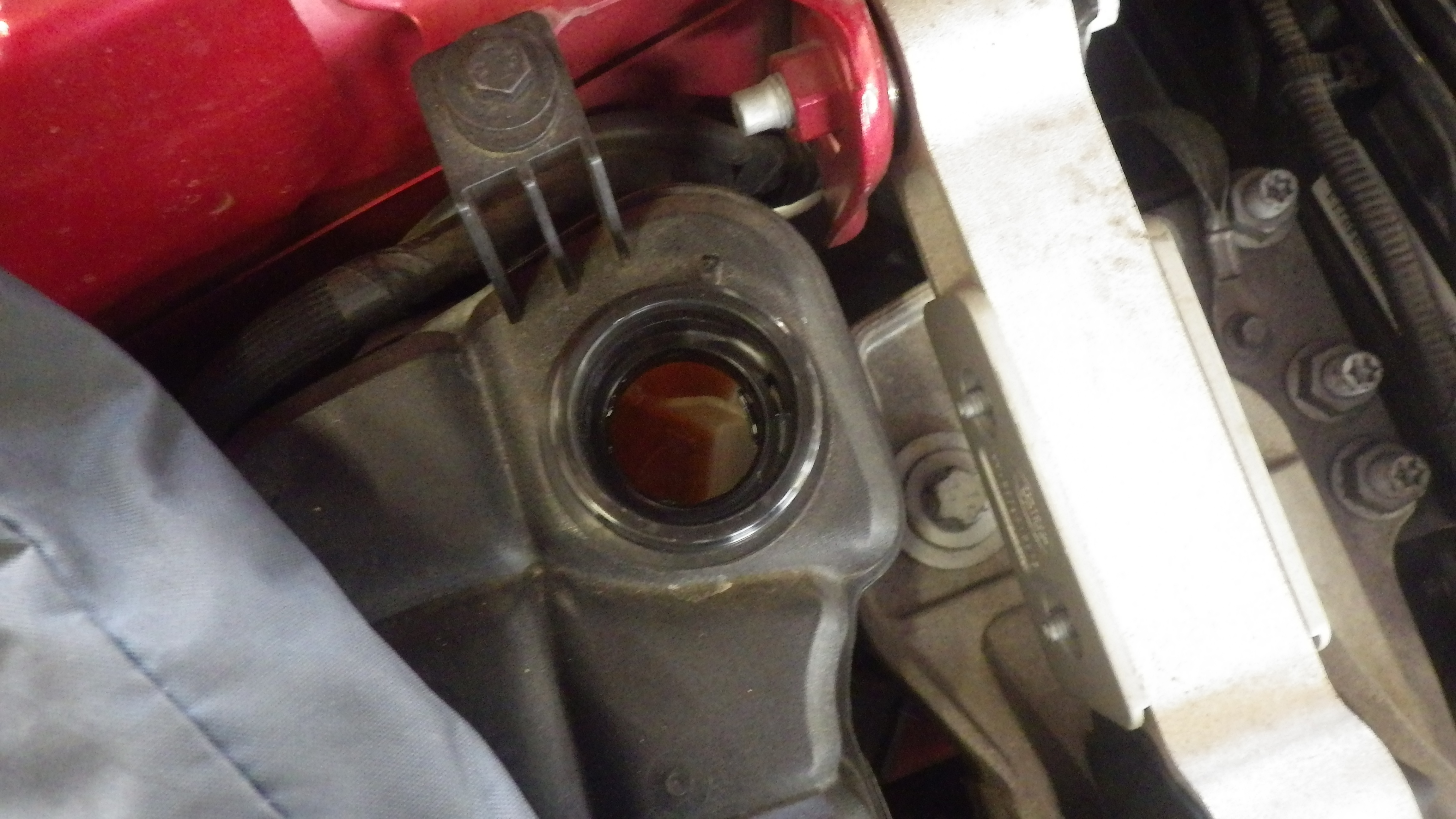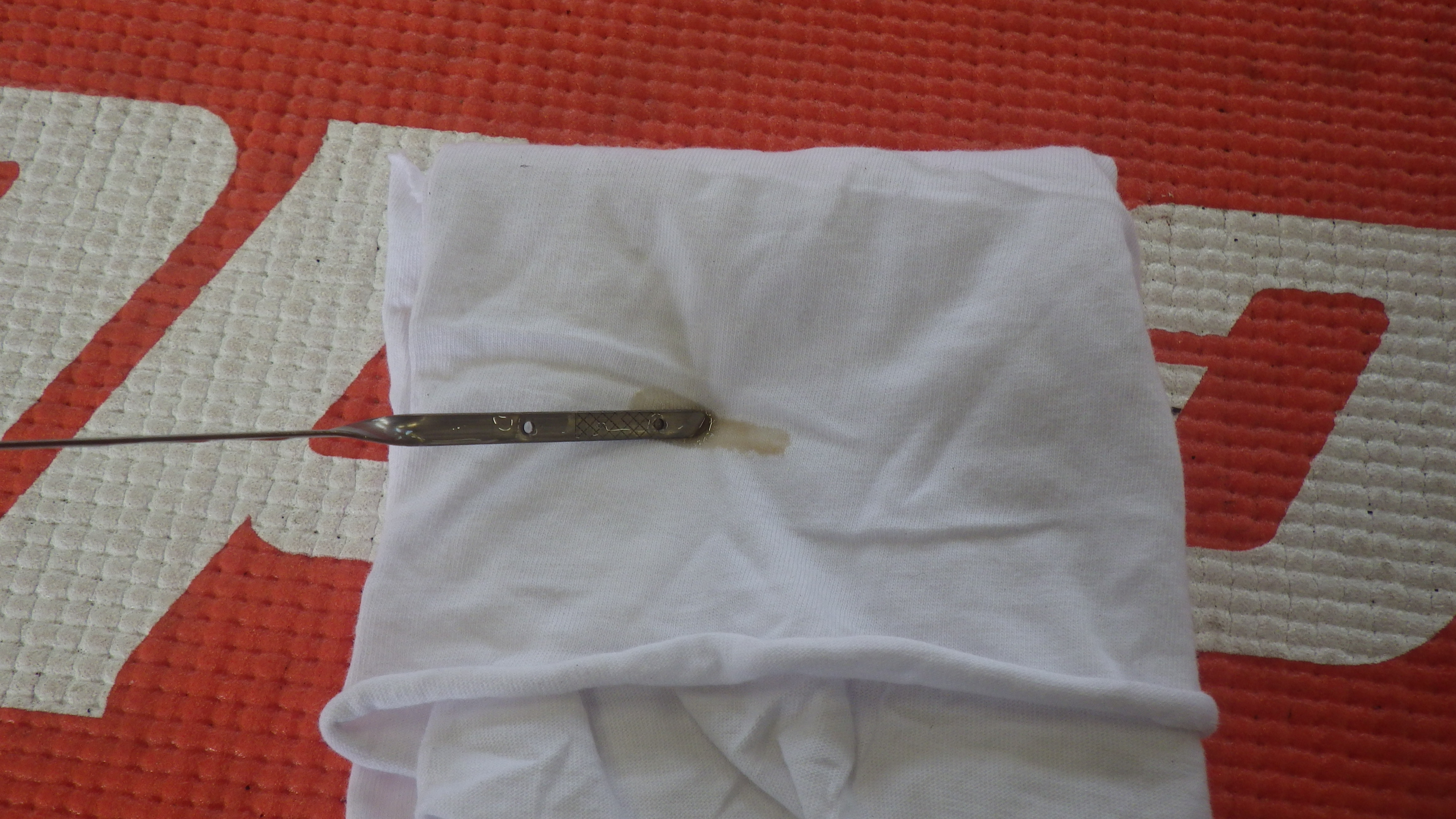 交換前、交換後のオイルです。交換後オイル量の点検も実施しています。