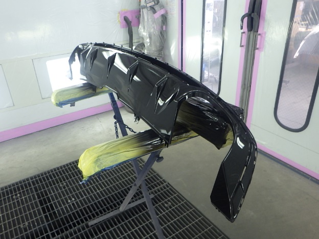 ベースコート(黒)、トップコート(クリヤー)の順に塗装作業を行いました。