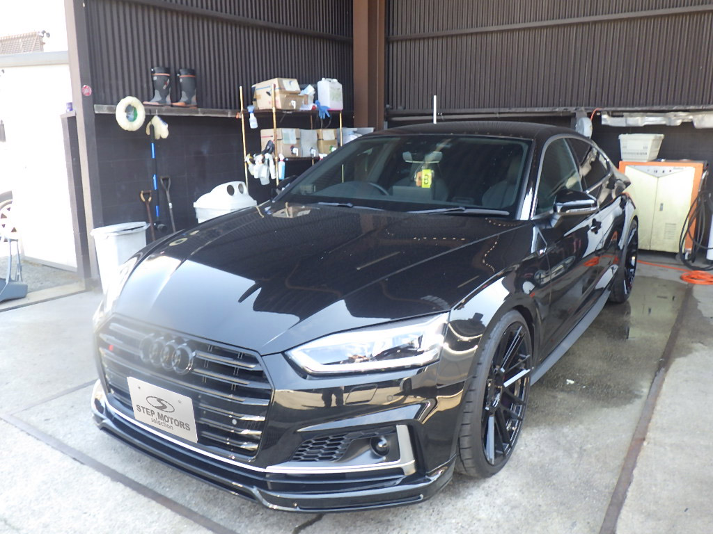 【鈑金塗装】【カスタム】兵庫県三木市、S様、2018y、アウディ、S5、フロントグリル交換ミラーカバーリアディフューザーペイント作業レポートです!ありがとうございました。