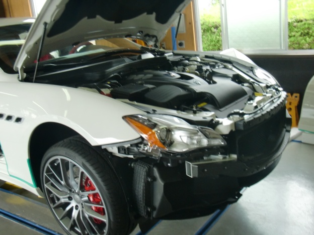 【鈑金塗装】【カスタム】兵庫県神戸市、新車、2014y、マセラティ、クアトロポルテ、フロントバンパーサイドスポイラーカスタムペイントレポートです!ありがとうございました。