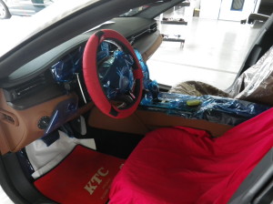入庫時確認作業の後、室内のキズ汚れ防止の為に、ハンドル、シートカバー、