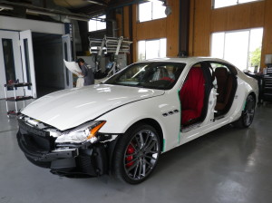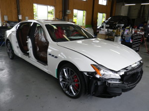 Home » 未分類 » 【鈑金塗装】【カスタム】兵庫県神戸市、新車、2014y、マセラティ、クアトロポルテ、フロントバンパーサイドスポイラーカスタムペイントレポートです!ありがとうございました。