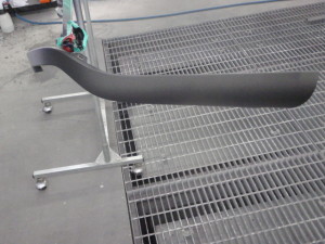 各部品足付け作業の後、黒メタリックに塗装する部品をシリコンオフで脱脂、エアブローして塗装作業開始です。
