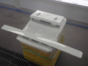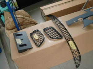 フロントバンパー・リヤバンパー・サイドスポイラーの取外し分解作業を進めていきました。