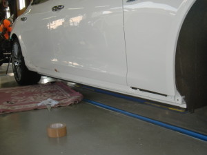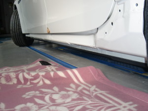 車両への組み付け作業、サイドスポイラーは前後ドアパネルを取り外して、組み付けました。