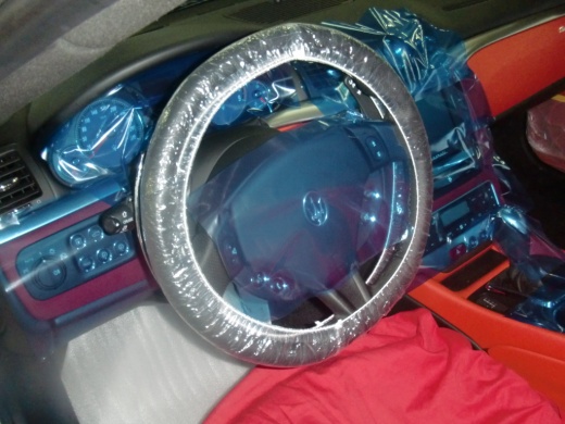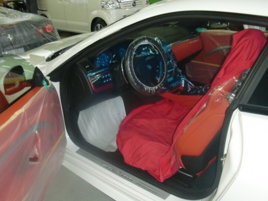 室内のキズ汚れ防止の為にシート、ハンドルカバー、保護シートの貼り付け作業を行いました。