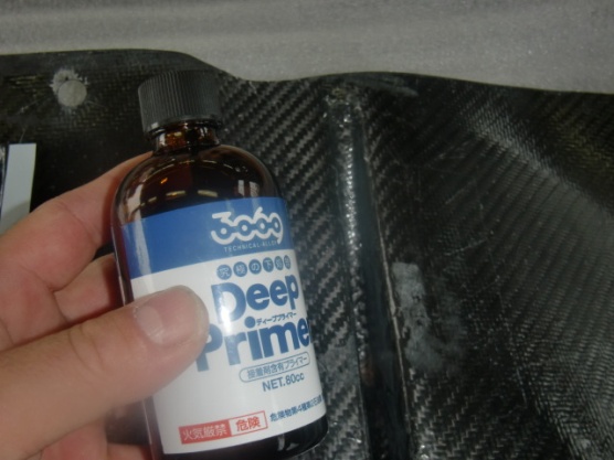 取り付け面をシリコンオフで脱脂した後、プライマーを塗布しました。