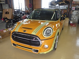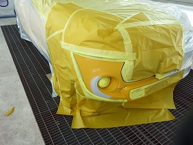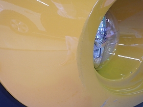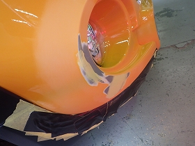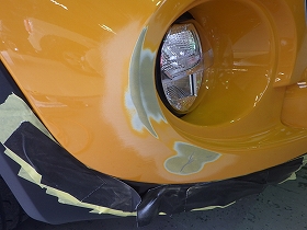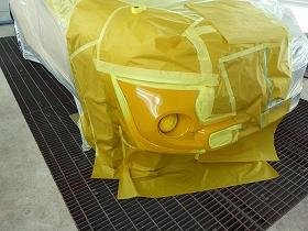 ベースコート(黄)、トップコート(クリヤー)の順に塗装作業を行いました。